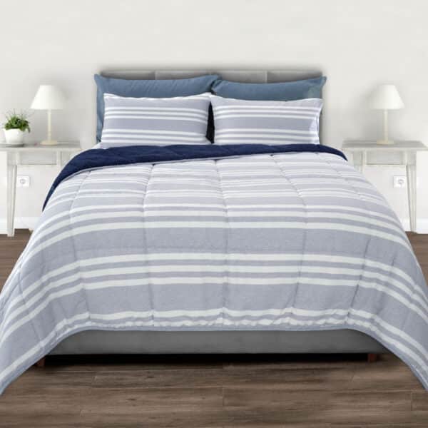 Comforter acolchado ovejero/Microf Catiónica azul rayas Kamuchy