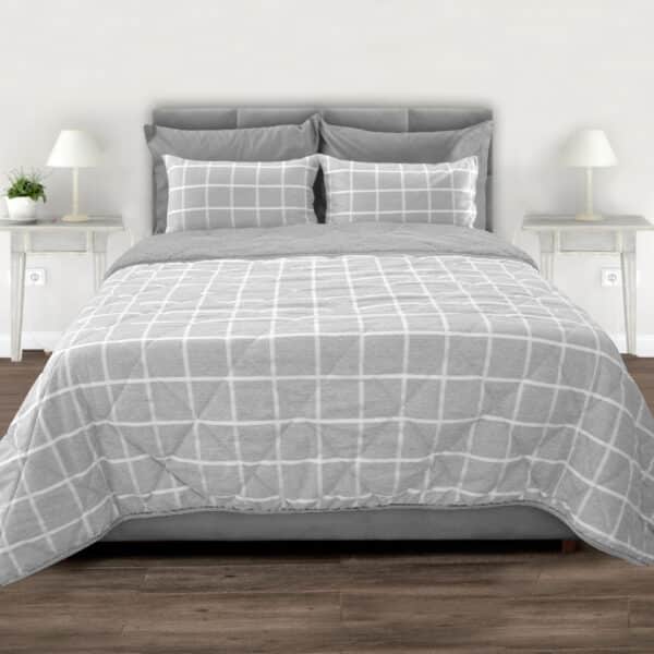 Comforter acolchado ovejero/Microf Catiónica gris cuadros