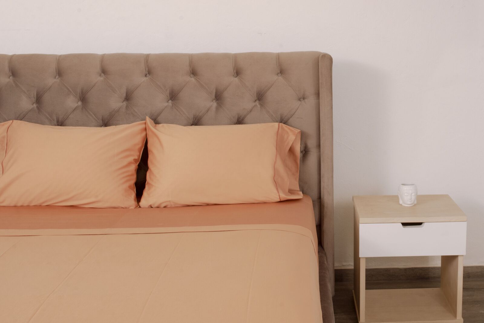 Disfruta de tonos vibrantes que se evidencian en telas con teñidos al natural de apariencia artesanal que le dan vida a tu dormitorio.